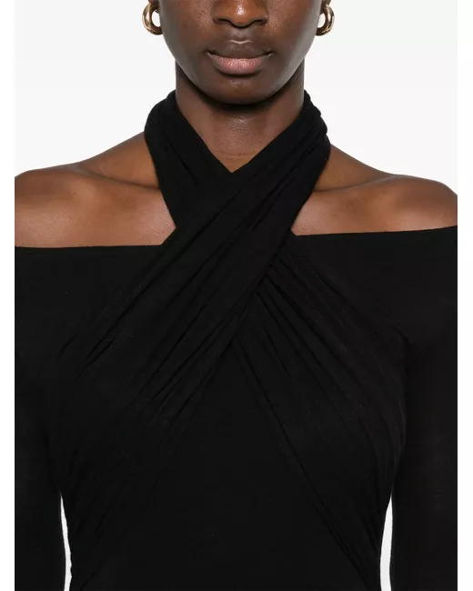 black double layer halterneck off-shoulder long sleeves