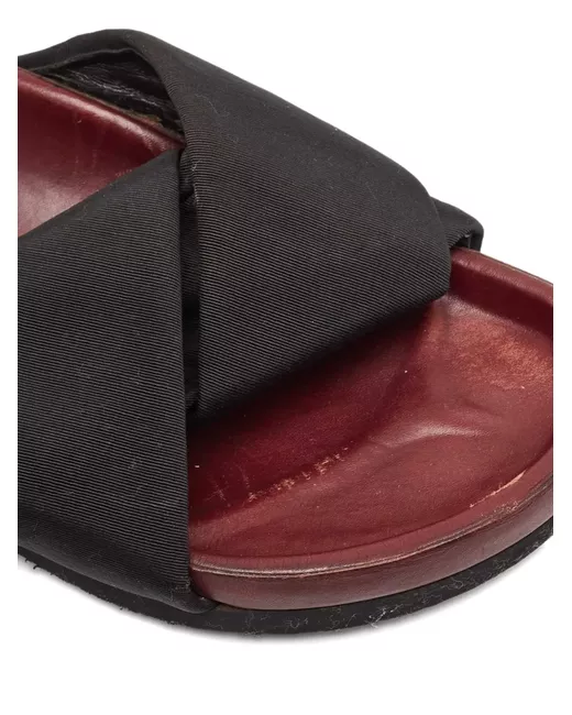 black crossover straps burgundy footbed contoured footbed textured sole simple design Condition: GOOD. This previously owned and used item is in good condition with minimal signs of use. This may include fading of material or plating and scratches.