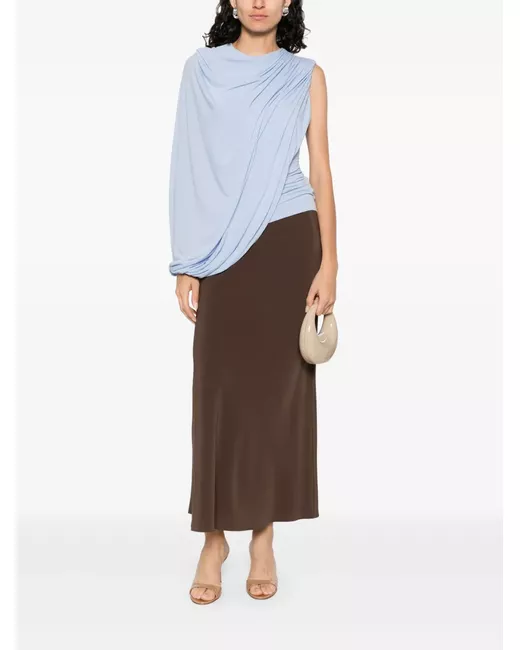 blue round neck draped design sleeveless