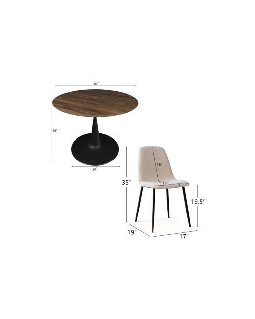 5-Piece Round Dining Table Set 39.4 Mdf Wood Grain Top with Metal Legs Upholstered Chairs for Kitchen or Apartment