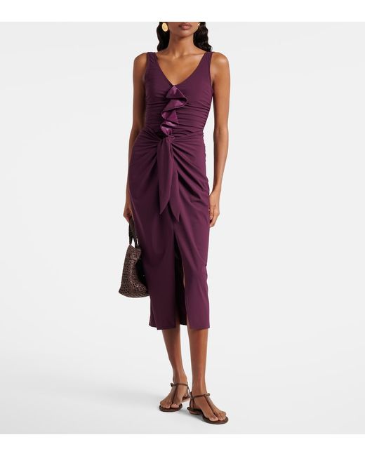 Material: 75% nylon, 25% elastane. Care instructions: hand wash cold. Made in the USA. Designer color name: Wine. Item color: burgundy. Closure: self-ties. Short vent.