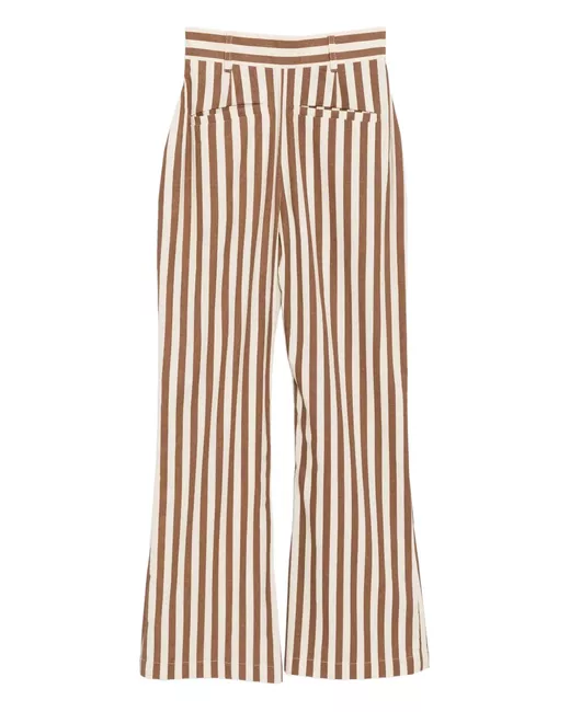 brown concealed front button, hook and zip fastening stripe print two side slash pockets two rear welt pockets