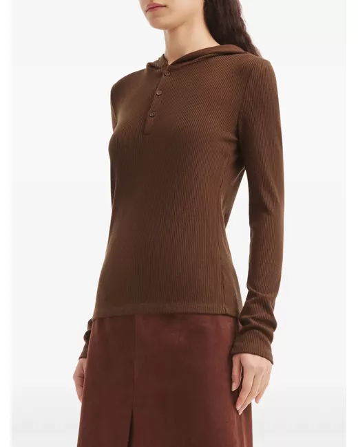 brown ribbed panel hooded short button fastening long sleeves