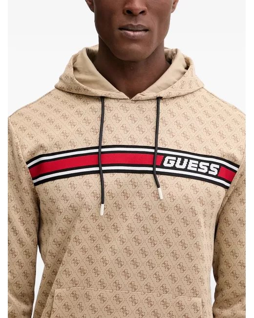 light brown monogram pattern drawstring hood front pouch pocket ribbed hem and cuffs
