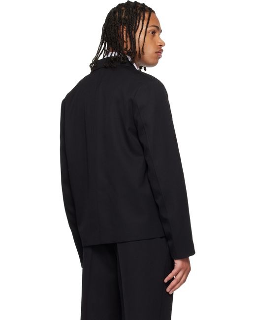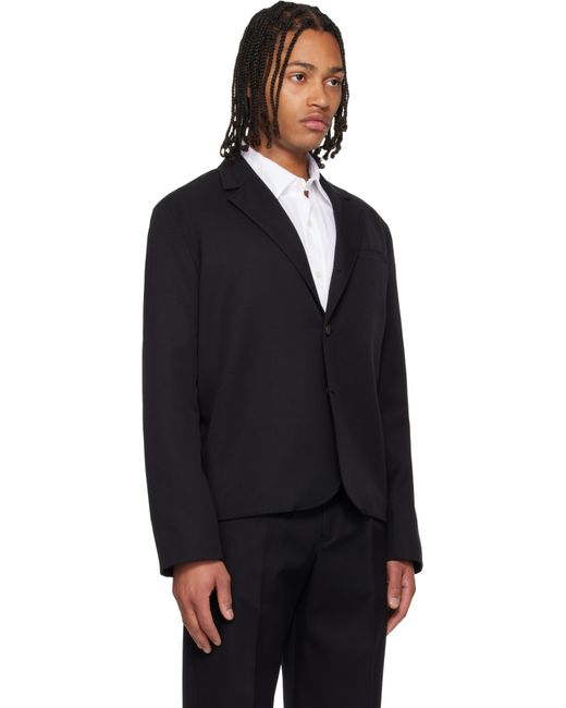 Virgin wool gabardine blazer. · Notched lapel · Button closure · Welt pocket at chest · Cropped hem · Welt pocket at interior · Full satin lining · Horn hardware Supplier color: Coarse black gabardine