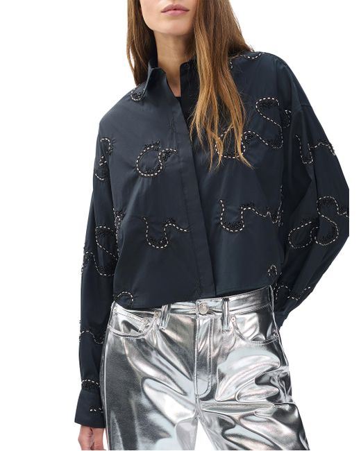 The Beatrice shirt from rag & bone is crafted of cotton and embroidered with beaded detailing. Spread collar Long sleeves Button-front closure 100% cotton Dry clean Imported SIZE & FIT About 20.5" from shoulder to hem Model measurements: 5'10" tall Model is wearing a US size Small ABOUT THE BRAND In 2002, rag & bone founder Marcus Wainwright combined his British heritage with a downtown-New York aesthetic to set the tone for the label. At the heart of the edgy-yet-laid-back brand is its focus on quality craftsmanship and attention to detail. The epitome of cool, off-duty style, it's no wonder the signature second-skin denim is favored by many. Contemporary Sportswear - Rag And Bone > Rag & Bone > Saks Fifth Avenue. rag & bone. Color: Black. Size: Small.