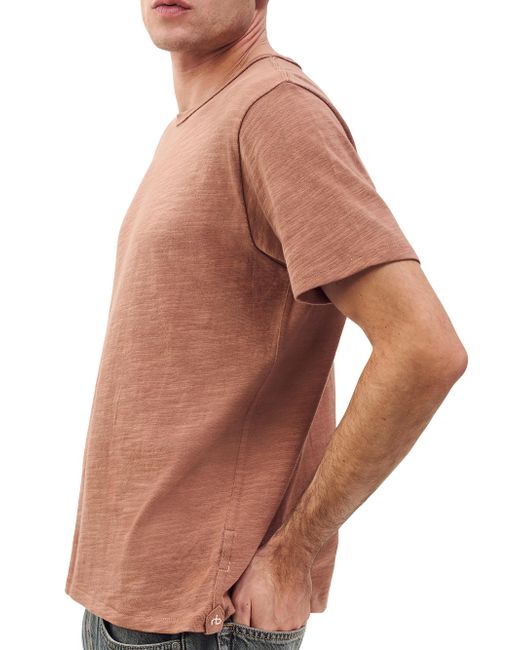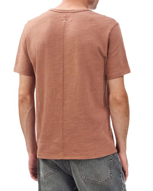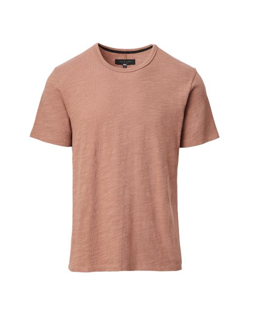Crafted of heathered cotton, rag & bone's Classic Flame T-shirt is designed with a traditional crewneck, short sleeves, and relaxed drop shoulders. Crewneck Drop shoulders Short sleeves Pulls over 100% cotton Machine wash Imported SIZE & FIT About 26.5" from shoulder to hem Model measurements: 6'2" tall, 40" chest, 31" waist Model is wearing a US size Medium ABOUT THE BRAND In 2002, rag & bone founder Marcus Wainwright combined his British heritage with a downtown-New York aesthetic to set the tone for the label. At the heart of the edgy-yet-laid-back brand is its focus on quality craftsmanship and attention to detail. The epitome of cool, off-duty style, it's no wonder the signature denim and easy knits are favored by many. Mens Denim & Contemp - Contemp Denim And Bottom > Rag & Bone > Saks Fifth Avenue. rag & bone. Color: Rust. Size: Small.