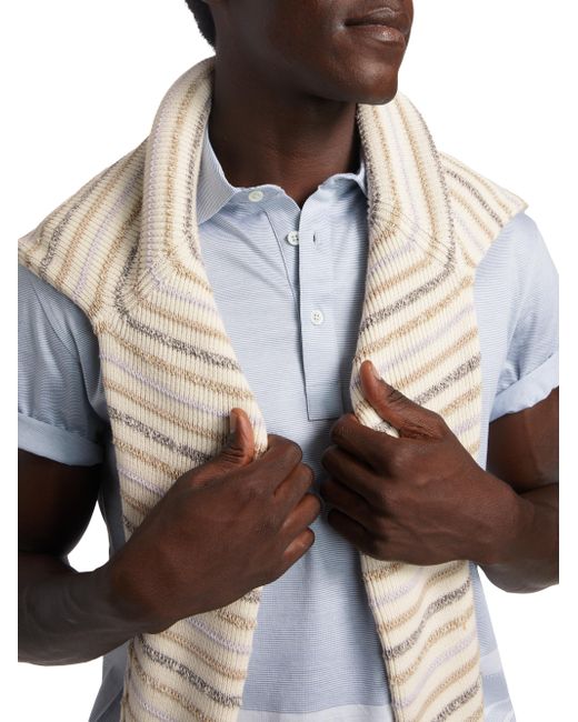 ONLY AT SAKS. Crafted of cotton, the Multi-Stripe polo shirt from Saks Fifth Avenue highlights varying horizontal stripes. A spread collar, short sleeves, and a front three-button closure complete this style. Spread collar Short sleeves Front three-button closure 100% cotton Hand wash Imported SIZE & FIT Model measurements: 6'2" tall, 40" chest, 31" waist Model is wearing a US size Medium. Mens Pvt Brands - Sfamc Sportswear > Saks Fifth Avenue > Saks Fifth Avenue. Saks Fifth Avenue. Color: Light Blue. Size: Medium.