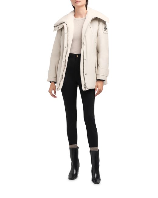 From the Originals Collection. The cotton-blend Aurora jacket from Moose Knuckles features a straight silhouette with insulating down fill and cozy shearling lining at the collar. Made with responsibly sourced down Stand collar Long sleeves, storm cuffs Chest snap pockets Side snap flap pockets Trim: 100% shearling Concealed front zip closure and snap placket 74% cotton/26% nylon Lining: 100% nylon Fur type: dyed sheep Fur origin: Australia Fill: 90% responsibly sourced down/10% feathers 800 fill power Dry clean by fur specialist Imported SIZE & FIT About 33" from shoulder to hem Model measurements: 5'10" tall Model is wearing a US size Small ABOUT THE BRAND Moose Knuckles' luxe parkas are designed to withstand extreme temps. Founded in 2007, the Canadian outerwear brand melds function with fashion. The handcrafted, fur-trimmed jackets are designed to protect from wind and water, with down insulation for maximum warmth. Plus, the brand boasts cozy hats and gloves to finish your cold-weather look. Outerwear And Swimwear - Down > Moose Knuckles > Saks Fifth Avenue. Moose Knuckles. Color: Alabaster. Size: XS.