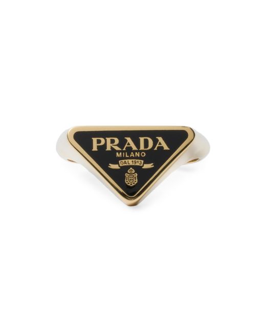 Enameled metal ring. Enameled metal triangle logo Imported 100% Brass - 100% Enamel SIZE 2.0W x 1.02H X 0.7'' x 0.4''. Lsd Rtw - Prada Rtw > Prada > Saks Fifth Avenue. Prada. Color: Gold. Size: 5.