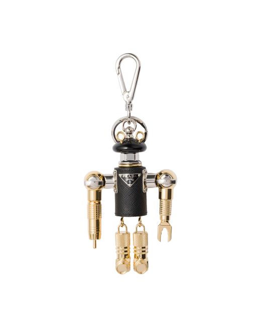 With snap hook and ring Enameled metal triangle logo Imported 100% Steel - 100% Calf Leather 20 cm / 7.9''. Lsd Handbags - Prada Handbags Access > Prada > Saks Fifth Avenue. Prada. Color: Black.