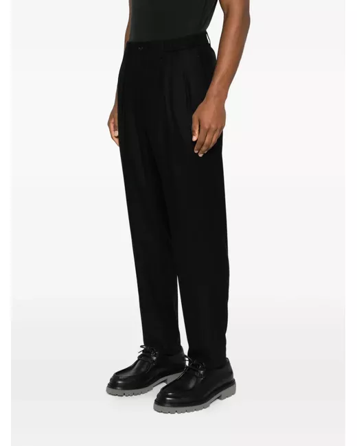 black elasticated waistband front pleats button fastening belt loops side seam pockets