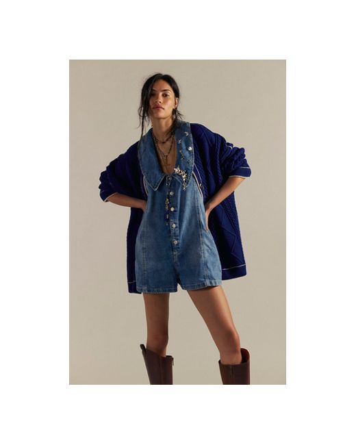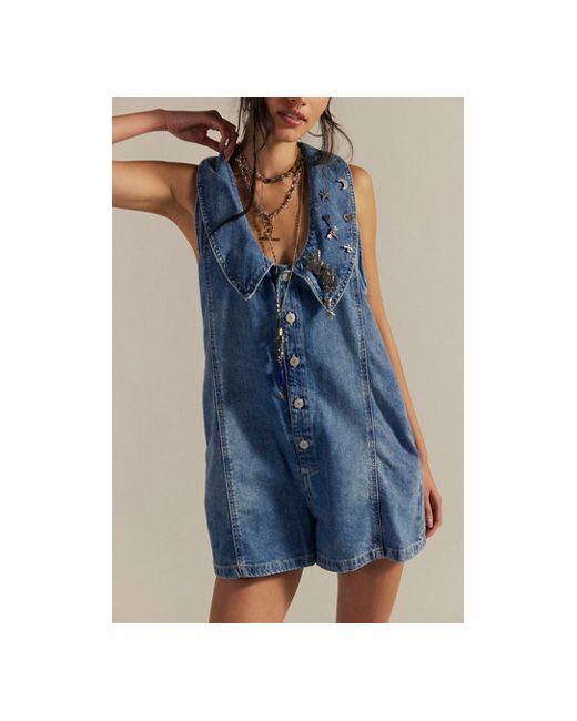Forever femme with vintage-inspired charm, this sweet playsuit from our We The Free collection will turn heads with every wear. **Fit:** Relaxed, shapeless babydoll fit **Features:** Oversized collar detail, front button-up closures, soft rigid denim, racerback design **Why We ❤ It:** Bold with tall boots or off-duty with sporty sneakers, this style has endless ways to wear. We The Free Dover Playsuit at Free People in Candy, Size: Small