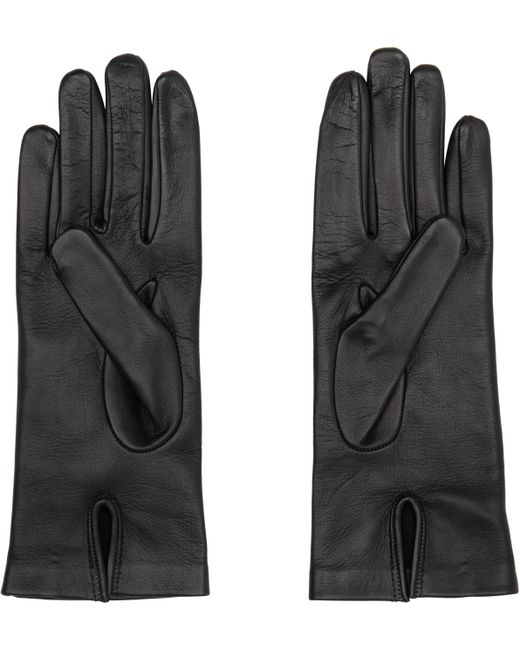 Pair of grained lambskin gloves. · Signature white stitching at top · Vent at cuffs · Suede lining Supplier color: Black
