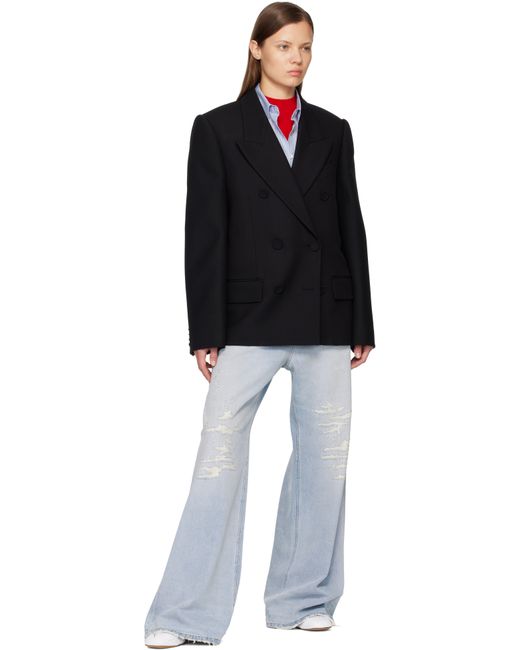 Wool canvas blazer. · Peaked lapel · Double-breasted button closure · Welt pocket at chest · Flap pockets at front · Buttoned surgeon's cuffs · Welt pocket at interior · Full satin lining Supplier color: Black