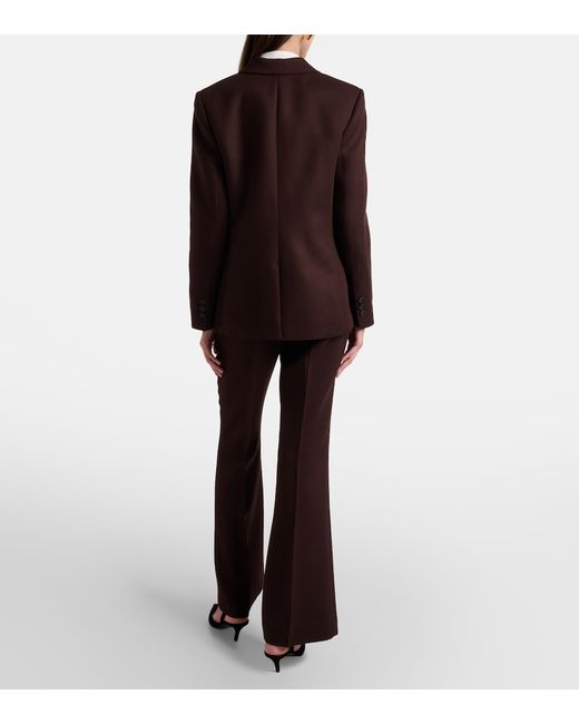 Material: 65% viscose, 15% acrylic, 12% polyester, 8% wool. Care instructions: dry clean. Made in Vietnam. Designer color name: Black Grape. Item color: brown. Closure: zip, hook, and button fastening. Pockets: slant pockets, back pockets. Belt loops.