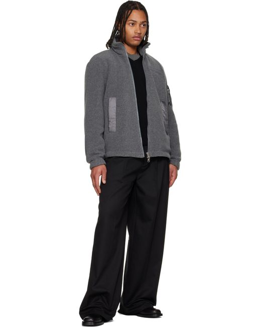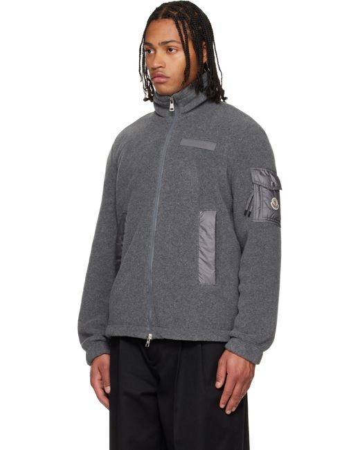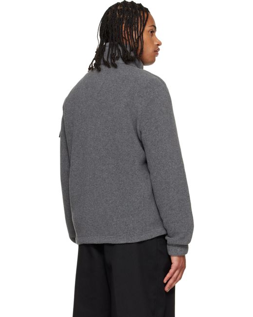 Fleece jacket. · Stand collar · Two-way zip closure · Rubberized logo patch at chest · Zip pockets at front · Bungee-style drawstring at hem · Taffeta flap pocket, zip pocket, and logo patch at sleeve · Elasticized cuffs · Partial taffeta lining Supplier color: Grey