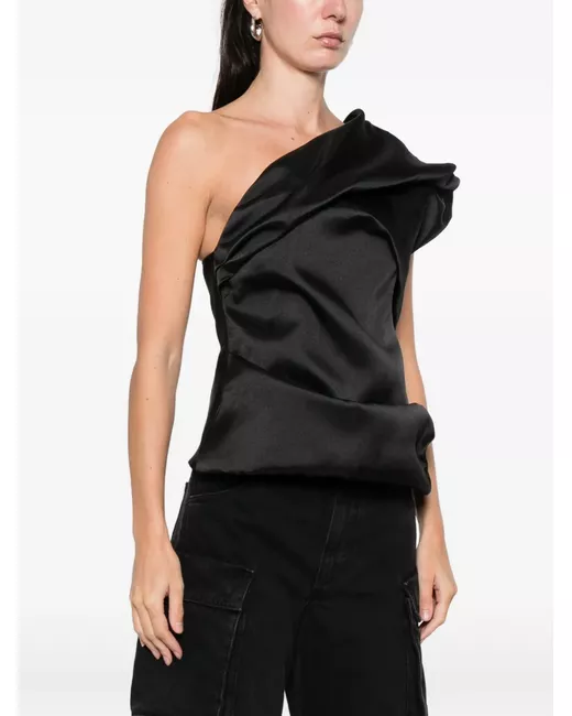 black draped detail asymmetric neckline