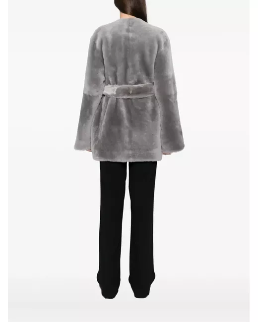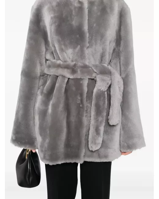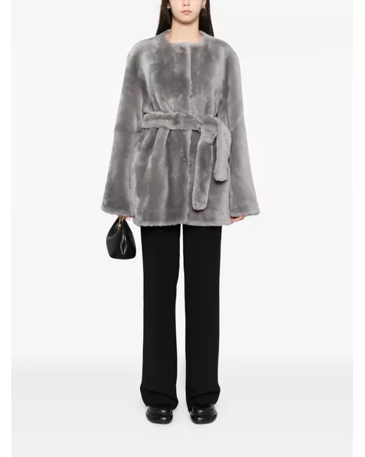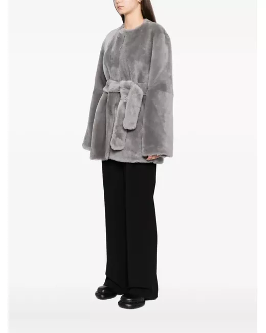 light grey front hook and eye fastening two side slit pockets detachable and adjustable waist belt belt loops