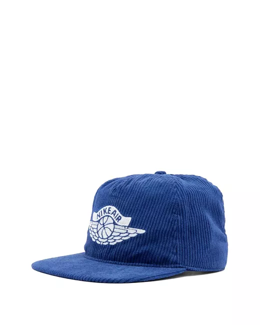 blue corduroy unstructured crown flat peak logo embroidered