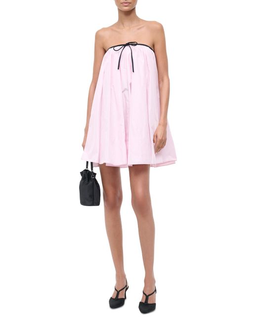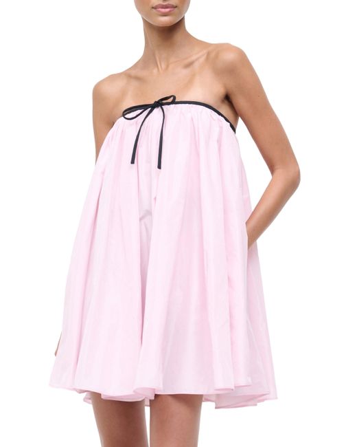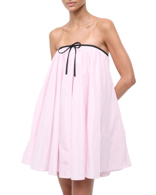 Staud's Sofia minidress is styled with a voluminous taffeta in a tent silhouette. A contrasting piping at the strapless neckline with a bow detailing complete the look. Strapless Side seam pockets Back zip closure 100% polyester Lining: 85% polyester/15% elastane Dry clean Imported SIZE & FIT About 34" from topline to hem Model measurements: 5'10" tall Model is wearing a US size Small. Contemporary Sportswear - Contemporary Collections > Staud > Saks Fifth Avenue. Staud. Color: Puff Pink. Size: 0.