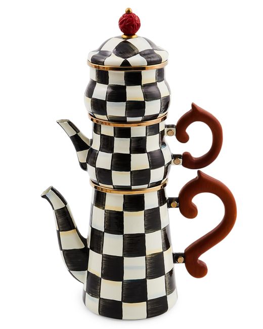 Showcasing the signature Courtly Check design, this Stackable Coffee set makes every cup charming. Inspired by one of MacKenzie-Childs' earliest enamel silhouettes, the serving pot and creamer are accented with handles and topped with a sugar bowl. Includes serving pot, creamer cup, and sugar bowl Steel/ stainless steel/ wool Hand wash Imported SPECIFICATIONS About 3.75"D x 9.3"W x 14.3"H Capacity: 16 oz. Home - Mackenzie Child > Mackenzie-childs > Saks Fifth Avenue. MacKenzie-Childs.