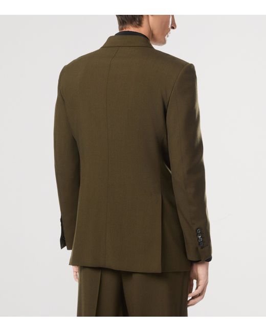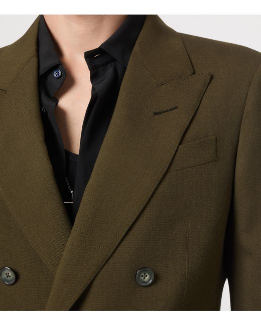 tom ford has carved a distinct niche in the menswear realm through its focus on timeless, flattering tailoring over fleeting seasonal trends, gaining favour amongst the most discerning men as a result. Here, Haider Ackermann showcases how he is continuing that approach at the helm of the House, subtly modernising a classic double-breasted blazer with the rich texture of a wool-cashmere-silk fabric.