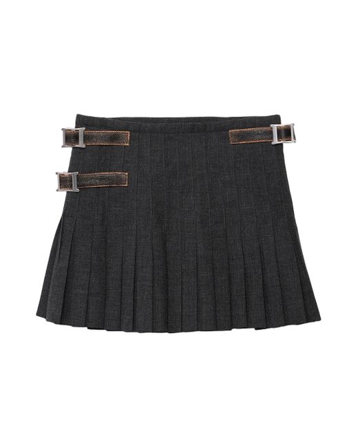 Women's Gray Pleated Rush Stitch Mini Skirt