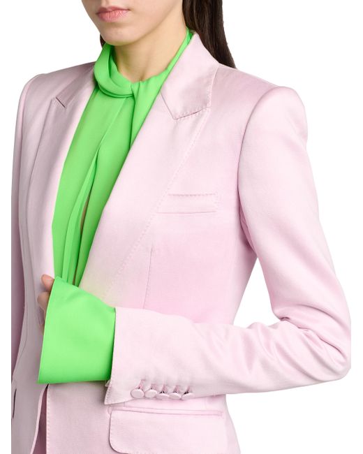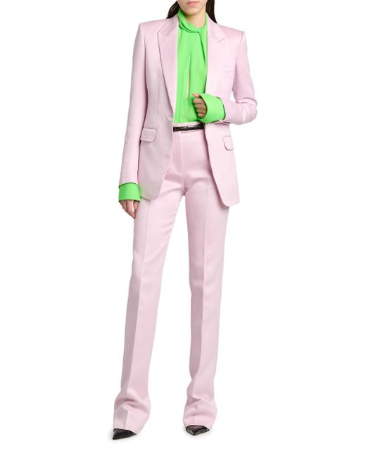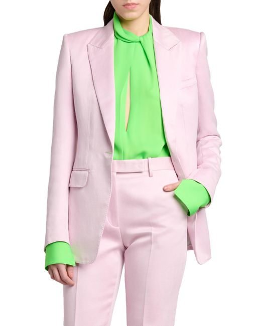 Cut in a single-breasted silhouette, this blazer from TOM FORD is crafted in Italy of a luxe cotton-silk blend. Notch lapels Long sleeves Front welt pocket Side flap pockets Button-front closure 61% cotton/39% silk Lining: 59% cupro/41% silk Dry clean Made in Italy SIZE & FIT Model measurements: 5'10" tall Model is wearing a US size 4 ABOUT THE BRAND After 10 years of serving as the Creative Director for several international luxury fashion houses, Tom Ford launched his own line of optical frames, sunglasses and beauty in 2005. The following year he debuted menswear, and in 2010, women's ready-to-wear. His sleek, tailored aesthetic has since catapulted him to mega-brand status. Advanced European - Italian Collections > Tom Ford > Saks Fifth Avenue. TOM FORD. Color: Orchid Pink. Size: 2.