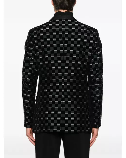 2000s black and grey checkered pattern shawl lapels single breasted button fastening long sleeves Condition: EXCELLENT. This previously owned item is in near-perfect condition with no signs of damage or use.