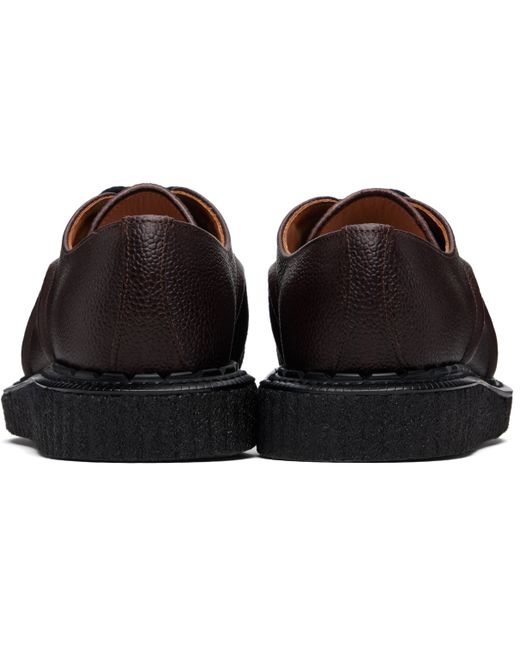Pebble-grained leather derbys. · Moc toe · D-rings at lace-up closure · Embossed stripe at sides · Grained leather lining · Topstitching at Goodyear welt · Crêpe rubber sole Supplier color: Oxblood pebble