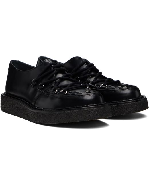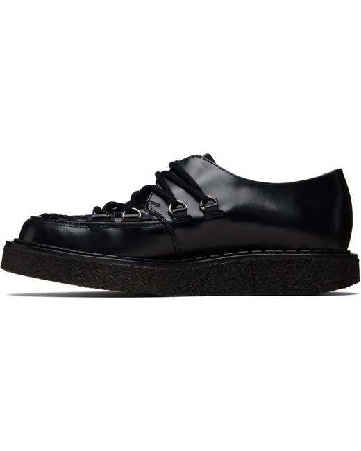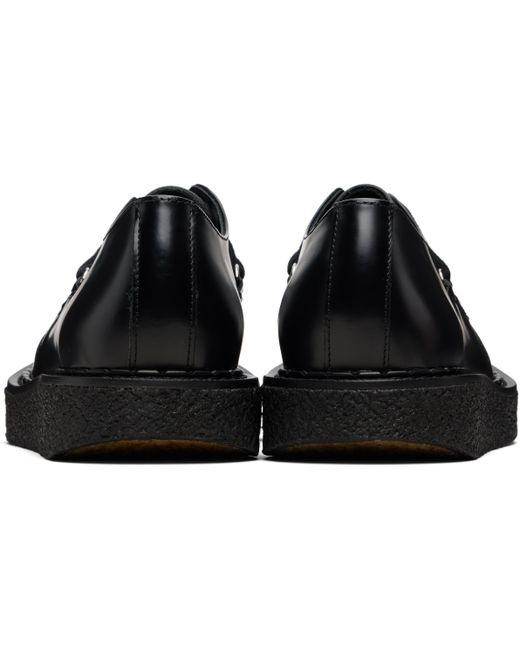 Handcrafted polished leather derbys. · Basket-woven detailing at moc toe · D-rings at lace-up closure · Grained leather lining · Topstitching at welt · Crêpe rubber sole Part of the George Cox x uniform experiment collaboration. Supplier color: Black