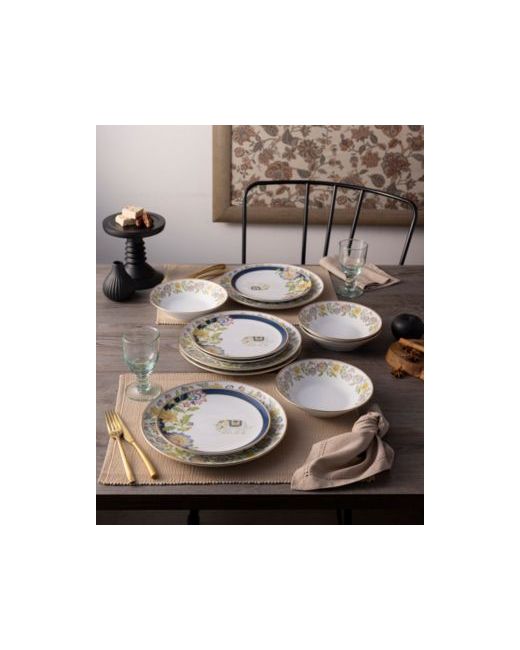 Serve fresh fruits or desserts in style with Noritake Tusker Garden fruit bowl set, featuring the collection's graceful floral arabesques and elephant motifs. The elegant banding completes these versatile and sophisticated serving pieces.