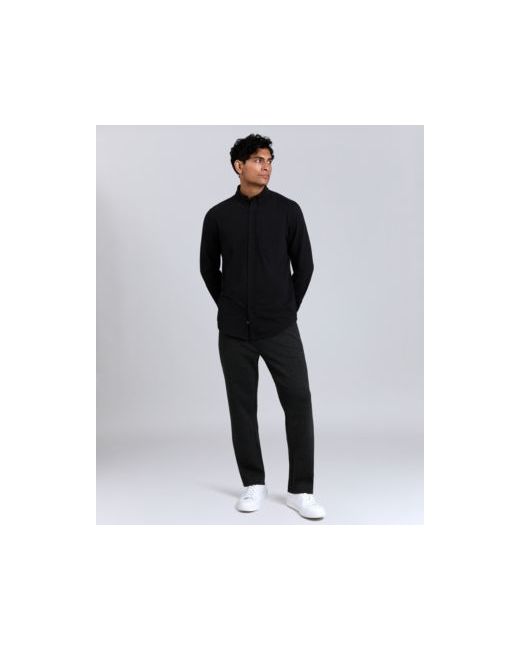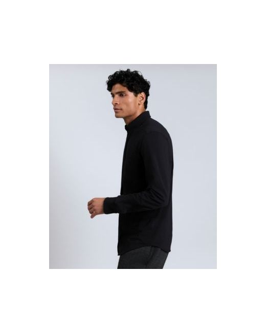 Women's Black Slim-Fit Plain White Performance Long-Sleeve Button-Down Shirt