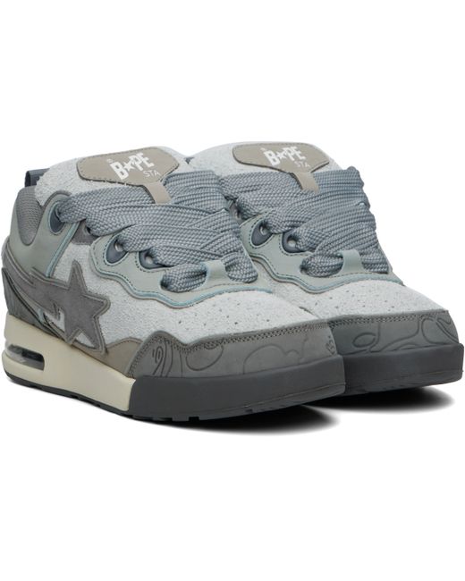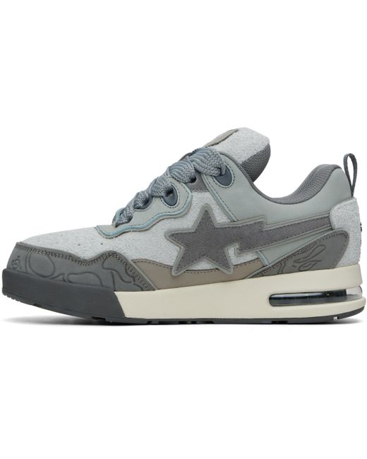 Low-top brushed suede and faux-nubuck sneakers. · Perforations at toe · Logo graphic pattern embossed at toe and sides · Lace-up closure · Logo patch at padded tongue · Padded collar · Logo appliqué at sides · Pull-loop at heel tab · Inset rubberized logo at heel counter · Transparent vinyl insert at foam rubber midsole · Treaded rubber sole Supplier color: Gray