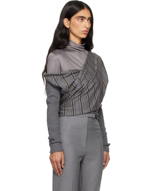 Knit merino wool-blend sweater. · Wraparound construction · Stripes throughout · Modified V-neck · Rib-knit sleeves Supplier color: Grey