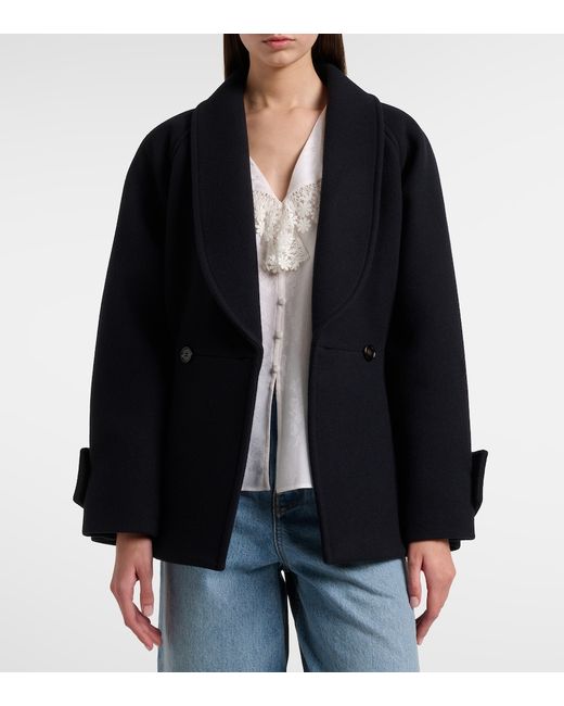 Material: 80% wool, 20% polyamide. Care instructions: dry clean. Made in Slovakia. Designer color name: Iconic Navy. Item color: blue. Lining: 51% viscose, 49% cotton. Details: 100% water-buffalo horn. Contains non-textile parts of animal origin. Shawl lapel. Cuff: tab cuff. Pockets: side slit pockets. Closure: double-breasted buttoned front. Wool.