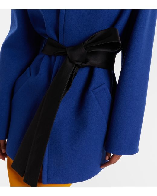 Material: 100% wool. Care instructions: dry clean. Made in Italy. Designer color name: Bleu Outremer. Item color: blue. Lining: 100% silk. Material II: 100% silk. Closure: concealed button placket. Pockets: welt pockets. Detachable belt. Wool.