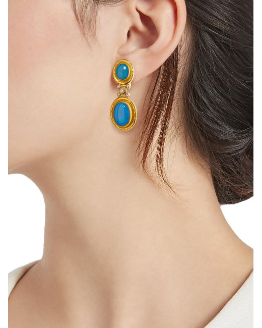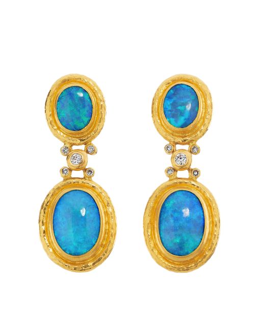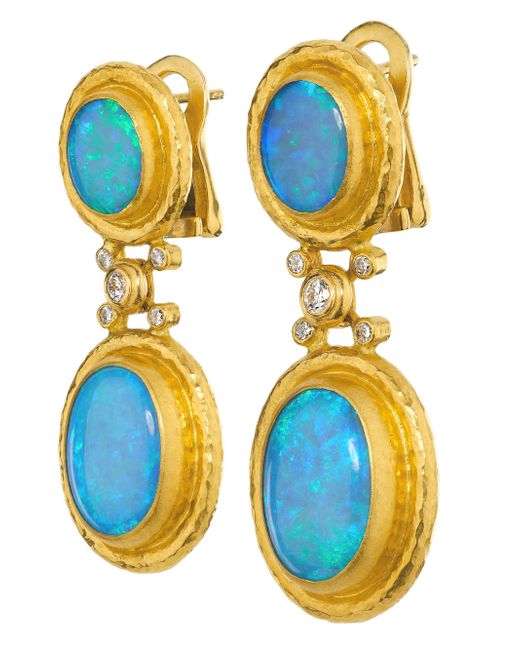 From the Muse Collection. Crafted of 24k gold, the Muse earrings from Gurhan are detailed with oval cabochon Australian opals and five brilliant-cut diamonds. Opal, about 13.56 tcw Diamond, about 0.348 tcw Diamond color: G-h Diamond clarity: Si2 24k gold Clip post Imported SIZE Drop: about 1.60" Earring size: about 0.62"W. Fine Jewelry - Gurhan > Gurhan > Saks Fifth Avenue. Gurhan. Color: Yellow Gold.