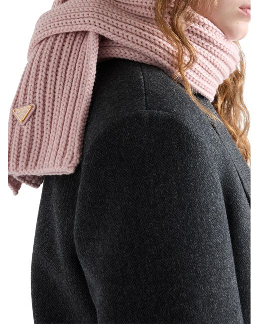 Enameled metal triangle logo Fisherman's rib knit 100% virgin wool Imported 100% Fleece Wool 18 W x 160 H / 7'' x 62''. Lsd Handbags - Prada Handbags Access > Prada > Saks Fifth Avenue. Prada. Color: Pink.