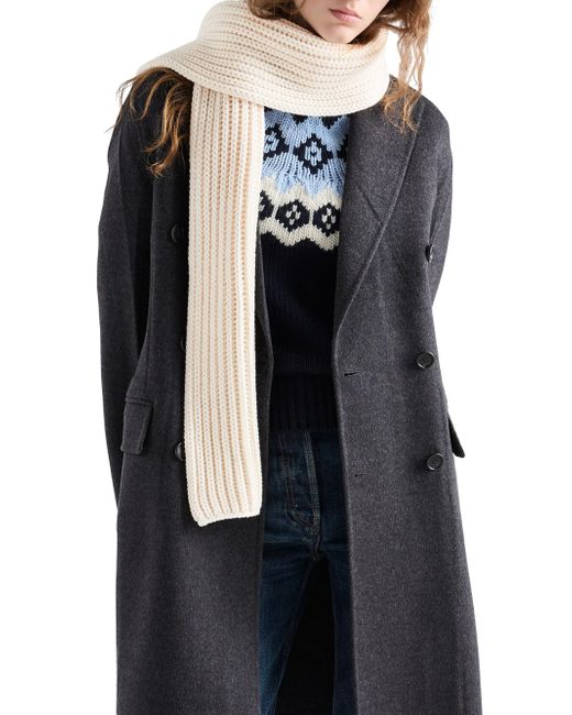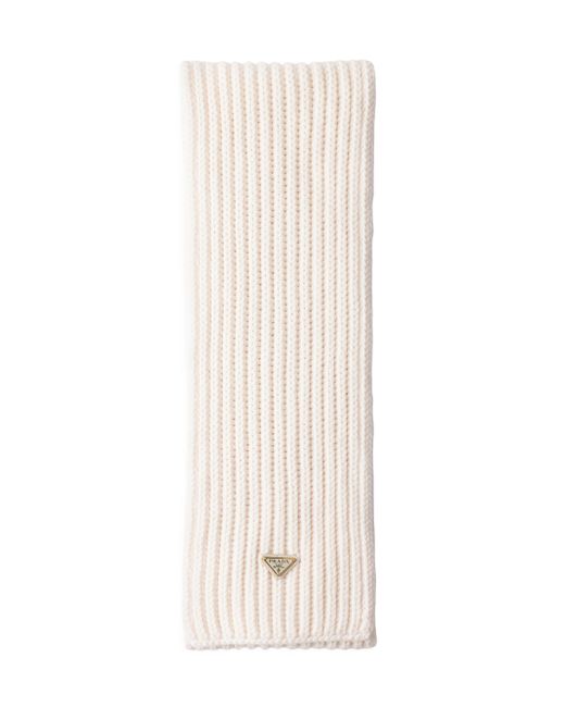 Enameled metal triangle logo Fisherman's rib knit 100% virgin wool Imported 100% Fleece Wool 18 W x 160 H / 7'' x 62''. Lsd Handbags - Prada Handbags Access > Prada > Saks Fifth Avenue. Prada. Color: Beige Khaki.