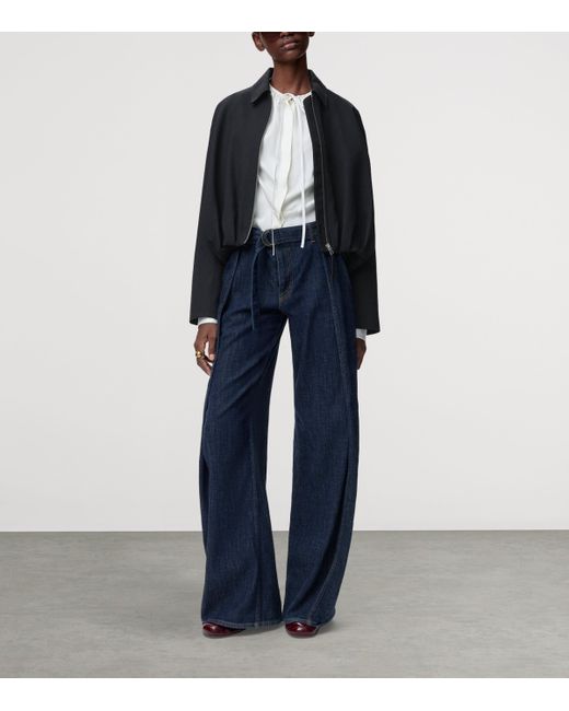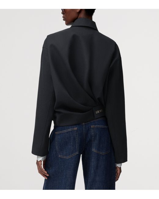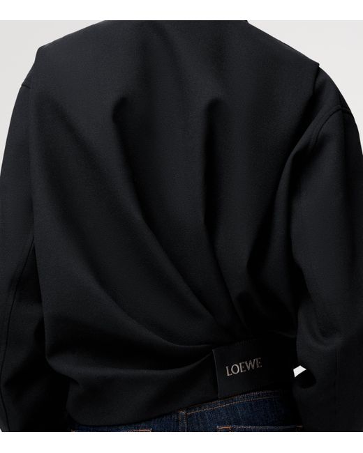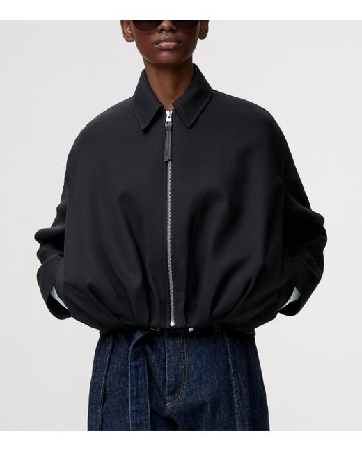 loewe's runways famously take a surrealist turn, exemplifying the House's skilful approach to silhouette to subsequently manipulate perception and material. Trickling down to its ready-to-wear, here that mastery informs this smooth bomber jacket, which is artfully draped around the back leather patch, pulling focus to its gathered, cropped hemline.