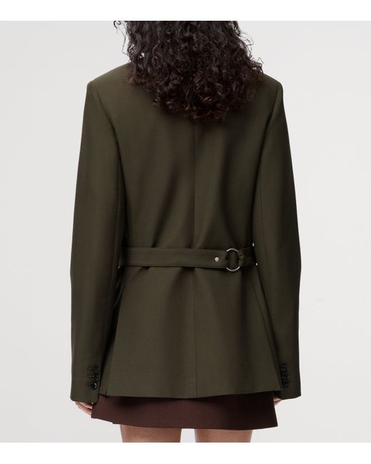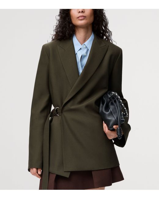 Experimental draping is a hallmark of loewe, with the House often blending classic tailoring with contemporary, fluid forms. This wool blazer sees its typical button-up front replaced with side D-ring belt detailing, letting you adjust the asymmetric wrap profile for a bespoke and flattering fit.