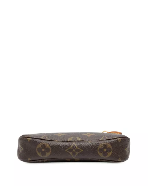 The Mini Pochette Accessoires features a monogram canvas body, a gold-tone chain handle, and a top zip closure. Brown. Serial Number: FL3017. This item has no inclusions. Condition: EXCELLENT. This previously owned item is in near-perfect condition with no signs of damage or use. Please refer to the photos on this product page for a detailed view of the item, including any damages declared.