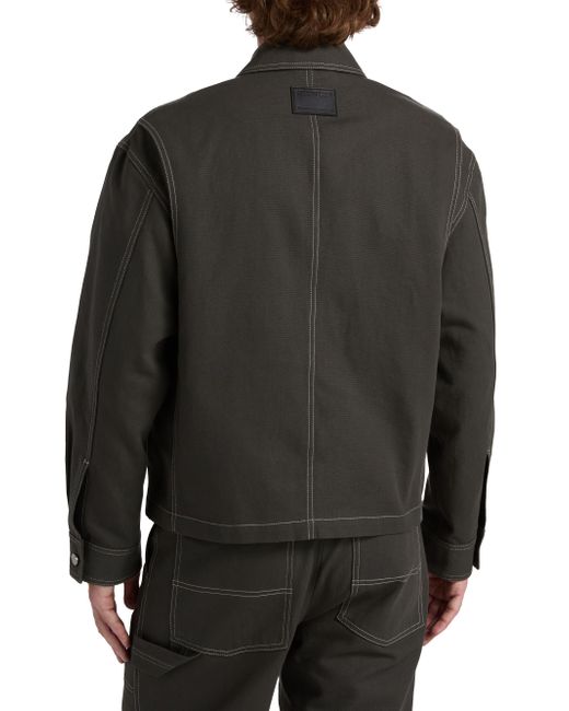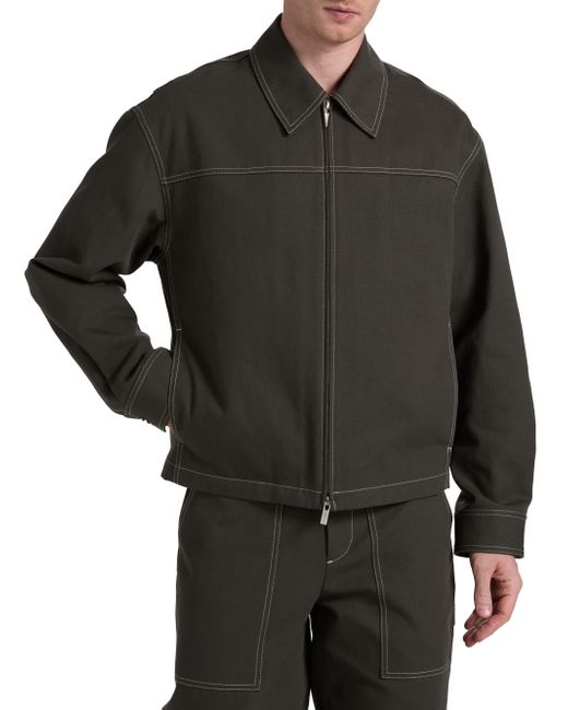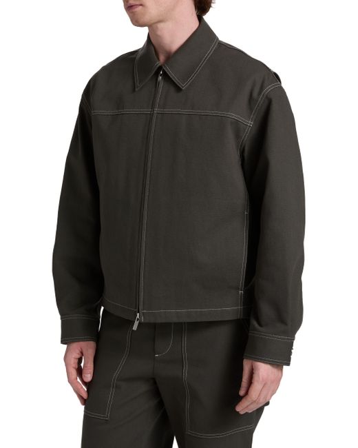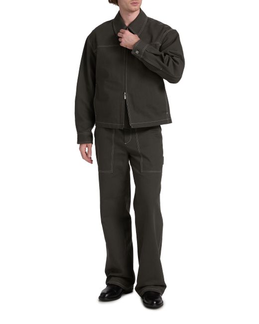 Crafted of utility-dense cotton, this carpenter jacket from Helmut Lang features contrast top-stitching. This style is cut for a relaxed fit featuring a spread collar, side on-seam pockets, and a front zip closure. Spread collar Long sleeves Side on-seam pockets Front zip closure 100% cotton Dry clean Imported SIZE & FIT About 26.5" from shoulder to hem Model measurements: 6'2" tall, 40" chest Model is wearing a US size Medium. Mens Adv Contemporary - Advanced Contemp Collect > Helmut Lang > Saks Fifth Avenue. Helmut Lang. Color: Graphite. Size: Medium.