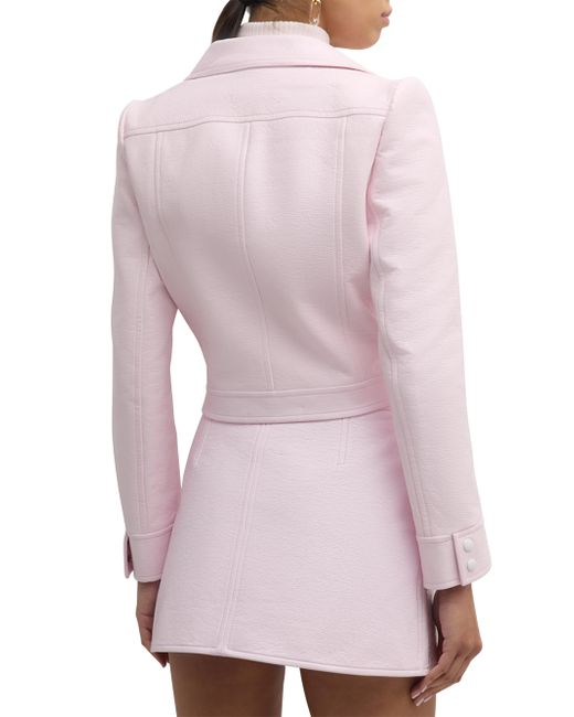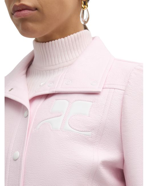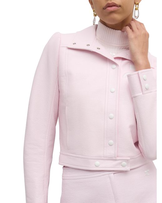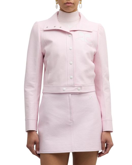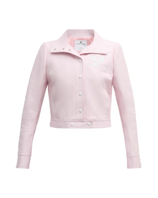 The iconic vintage-inspired Reedition vinyl jacket from Courrèges is styled with a high collar, side slip pockets, and an embroidered AC logo. This piece fastens with a front snap closure. High collar Long sleeves, snap cuffs Side slip pockets Front snap closure 88% cotton/10% polyurethane/2% elastane Lining: 100% cupro Spot clean Imported SIZE & FIT This style is designed for a boxy fit About 18.5" from shoulder to hem Bust, about 38" Model measurements: 5'10" tall Model is wearing a US size 4. Advanced Designer - Designer Collections > Courreges > Saks Fifth Avenue. Courreges. Color: Pink.