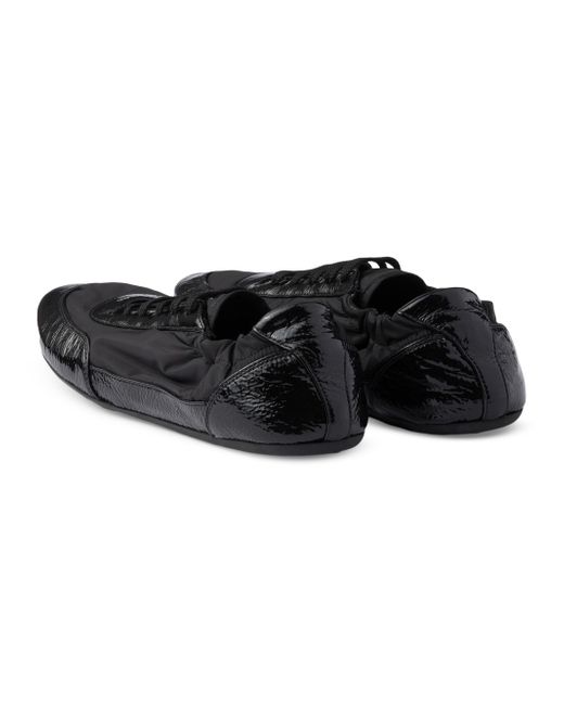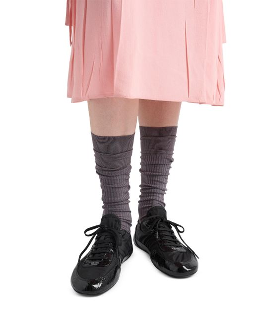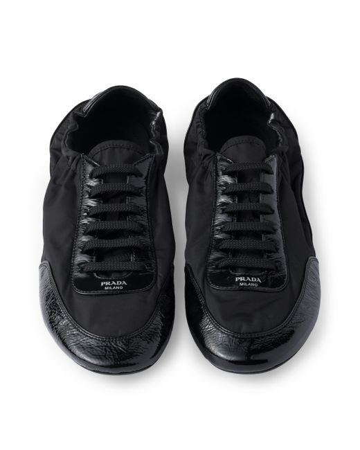 Upper with leather inserts Leather lining Screen-printed Prada Milano logo Flat laces Rubber sole, 5 mm Tread with geometric pattern Removable leather-covered insole Imported 73% Recycled Polyamide 27% Recycled Polyester - 100% Lamb Leather SIZE 0.0W x 0.0H x 0.0L. Lsd Rtw - Prada Rtw > Prada > Saks Fifth Avenue. Prada. Color: Black. Size: 7.