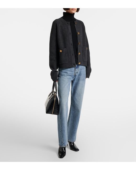 Material: 93% wool, 6% polyamide, 1% elastane. Care instructions: hand wash. Made in China. Designer color name: Charcoal. Item color: gray. Hardware color: gold. Closure: buttoned front. Pockets: buttoned pockets. Cuff: ribbed. Hem: ribbed. Wool.