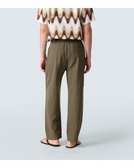 Material: 65% polyester, 35% linen. Care instructions: dry clean. Made in China. Designer color name: Dark Chocolate. Item color: green. Elasticated waistband. Pockets: slant pockets. Belt loops.