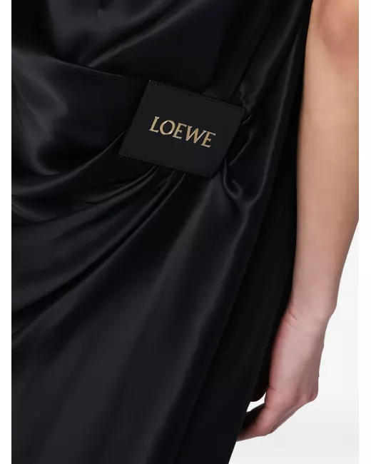 black sleeveless round neck draped detailing asymmetrical hem logo patch